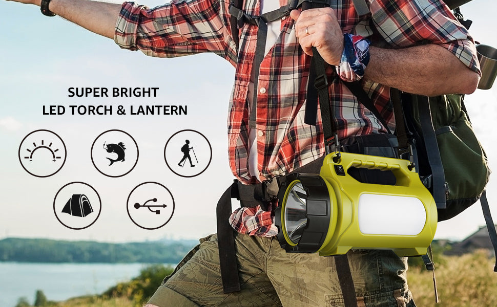 Charged via USB cable (provided), don’t need to spend money on batteries. This torch lantern can also work as a power bank to charge your phone occasionally.