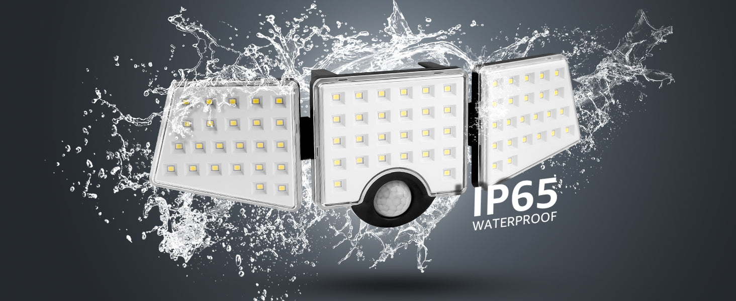 - [IP65 Waterproof & Durable] The solar security lights outdoor motion sensor is made of durable GPPS+ABS material to ensure that this outdoor safety light can withstand inclement weather and inclement weather. IP65 waterproof rating ensures that it can also work in rainy seasons.