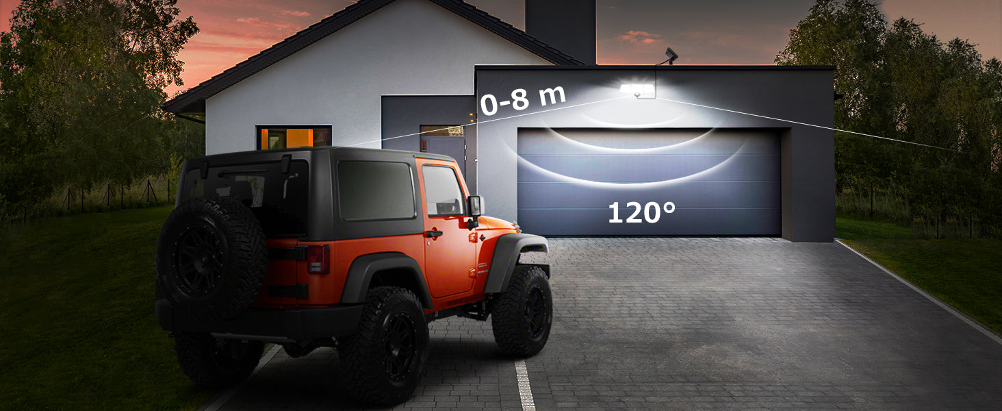 - [Smart PIR Motion Sensor] The solar floodlight is equipped with accurate and sensitive light sensor and infrared sensor. Automatically turn on at night and turn off in the morning. When it detects the movement of a person or pets, it automatically turns on for 20 seconds. Its sensing range can reach 8M, and the detection angle is 120°.