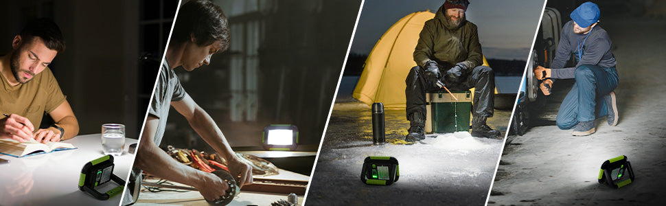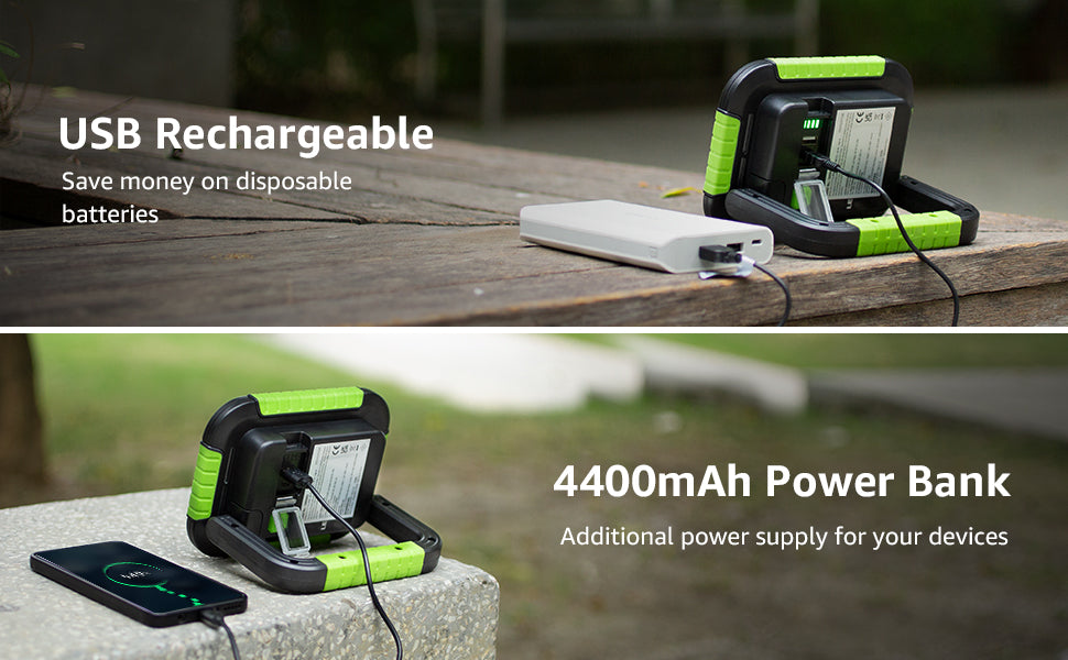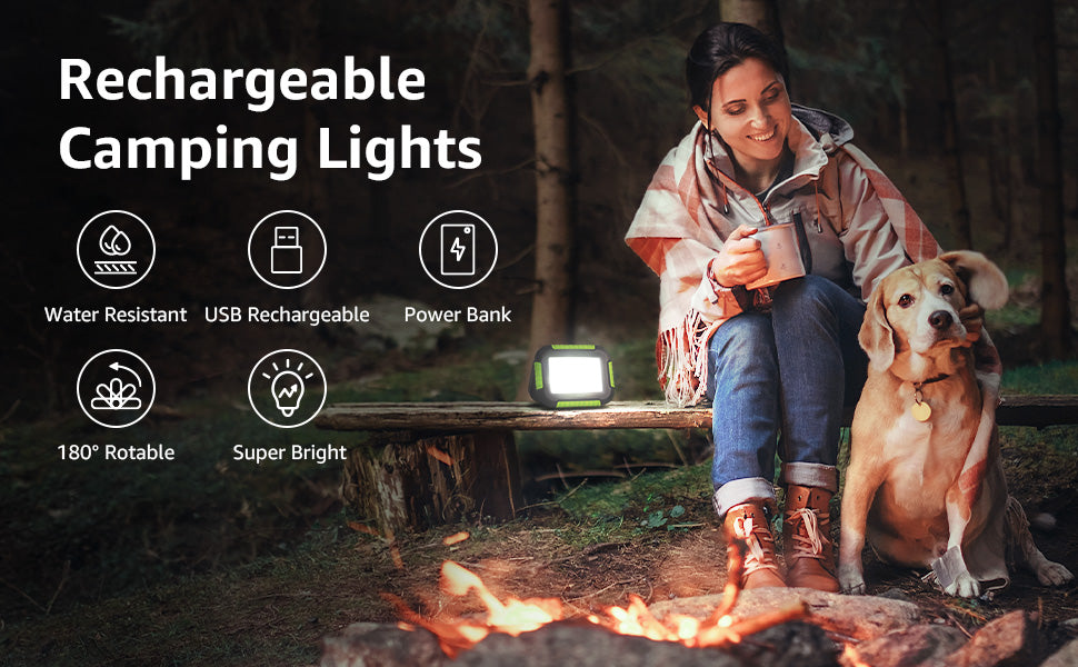 - Flexible handle, lightweight and compact design make this rechargeable camping light suitable to carry outside for camping or working.
